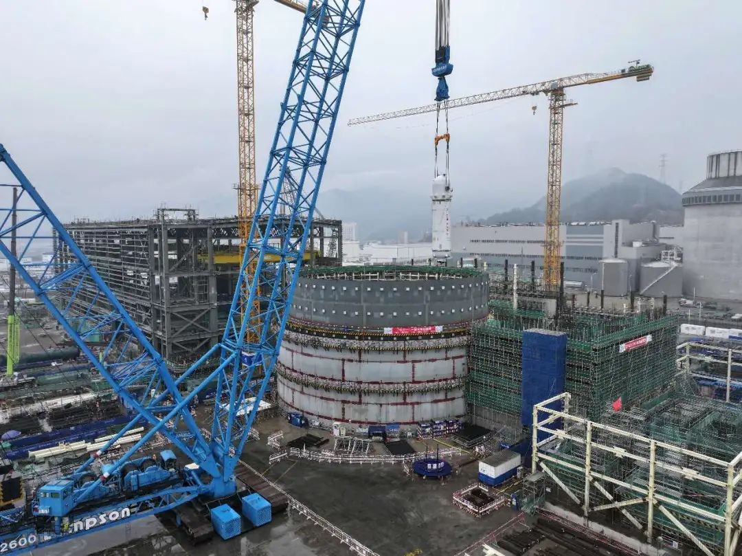 1月19日,三門核電3號機組核島反應堆廠房穩壓器吊裝就位,為后續波動管焊接及穩壓器腔室大宗材料安裝工作的全面展開創造了良好條件。