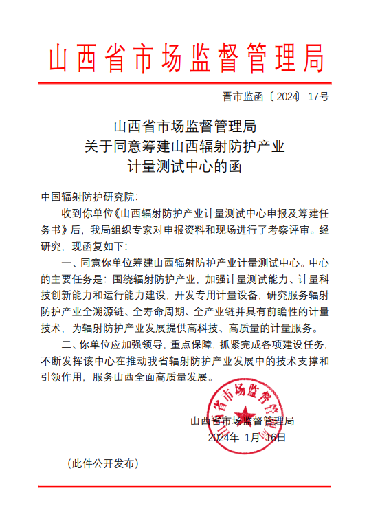 近日,經(jīng)資料審查和現(xiàn)場(chǎng)考評(píng),山西省市場(chǎng)監(jiān)督管理局同意,由中輻院籌建山西輻射防護(hù)產(chǎn)業(yè)計(jì)量測(cè)試中心,將以更加專(zhuān)業(yè)精準(zhǔn)的測(cè)量手段,為提升核設(shè)施設(shè)備質(zhì)量、助推輻射防護(hù)產(chǎn)業(yè)高質(zhì)量發(fā)展提供更為有效的計(jì)量保障。