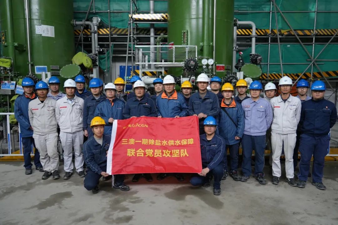 蒼南核電化學環保模塊聯合項目部安裝、調試板塊成立黨員攻堅隊,主動謀劃,積極向上游延伸,克服水源氣源供給、系統排水、罐體內部襯膠修補、濾料裝填、假期人力不足等眾多困難,歷時29天,完成安裝竣工狀態報告B版簽字、隔離移交申請及實施、系統調試及消缺工作,最終實現產水一次成功。產水目標的順利達成標志著系統已初步具備向核島、常規島廠房供應合格除鹽水的能力,并將為三澳核電項目1、2號機組單系統調試、核回路沖洗、冷試、熱試等提供水源保障。