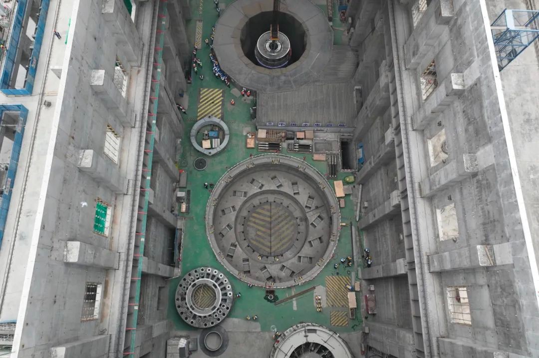 “轉輪是水輪發電機組產生電能的核心部件,被譽為水輪發電機組的‘心臟’。本次吊裝的轉輪由上冠、下環及15個葉片組裝焊接而成,最大直徑6.37米、高3.29米,吊裝總重約114噸,共歷時52分鐘吊裝完成。”黃河公司羊曲籌建處主任楊云峰說。