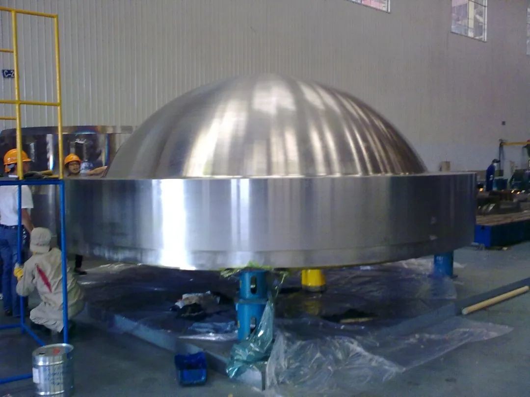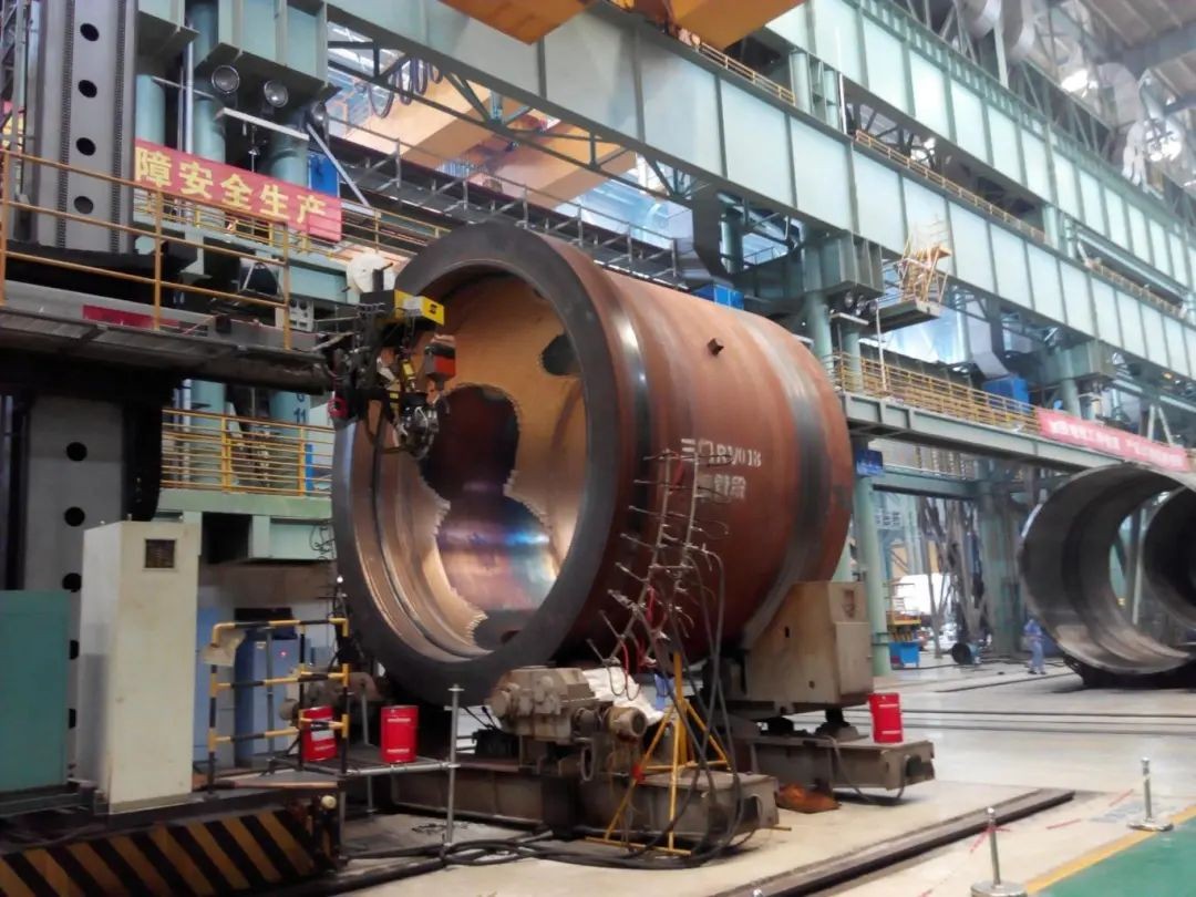 這個“超級熱水壺”是個大肚子,有八個胳膊,一個大帽子。這些“器官”可都是大家伙,現在世界上能造出這樣的大塊頭的廠家屈指可數,但是中國就有好幾家,足見我們國家的制造之強。鍛造廠為了鍛出它的鋼筋鐵骨,配備了萬噸壓機、大型運輸機械,它的大帽子重達70多噸。為了使鍛造比與材料性能相匹配,設計人員和鍛造人員、監造人員一起協同試驗,不斷嘗試,確保了這個“超級熱水壺”的“骨架”足夠強壯。