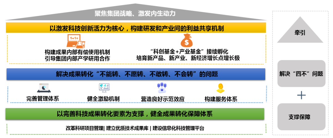 二是以完善管理體系為基礎(chǔ),解決成果轉(zhuǎn)化“不能轉(zhuǎn)”的問題。