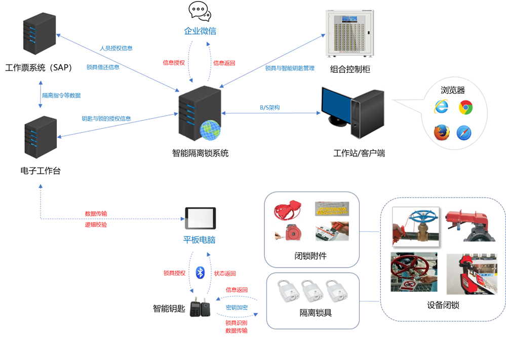 以往的隔離/解隔離階段靠人工識(shí)別,解隔離階段一把鑰匙通開所有鎖具,過(guò)程中缺少技術(shù)/權(quán)限管控,存在走錯(cuò)間隔風(fēng)險(xiǎn);還無(wú)遠(yuǎn)程技術(shù)手段實(shí)時(shí)了解現(xiàn)場(chǎng)進(jìn)度,也無(wú)法實(shí)時(shí)獲取鎖具真實(shí)的開閉合狀態(tài),難以保證隔離效果;并且采用紙質(zhì)流程難以保留證據(jù),無(wú)法對(duì)操作記錄進(jìn)行追溯。