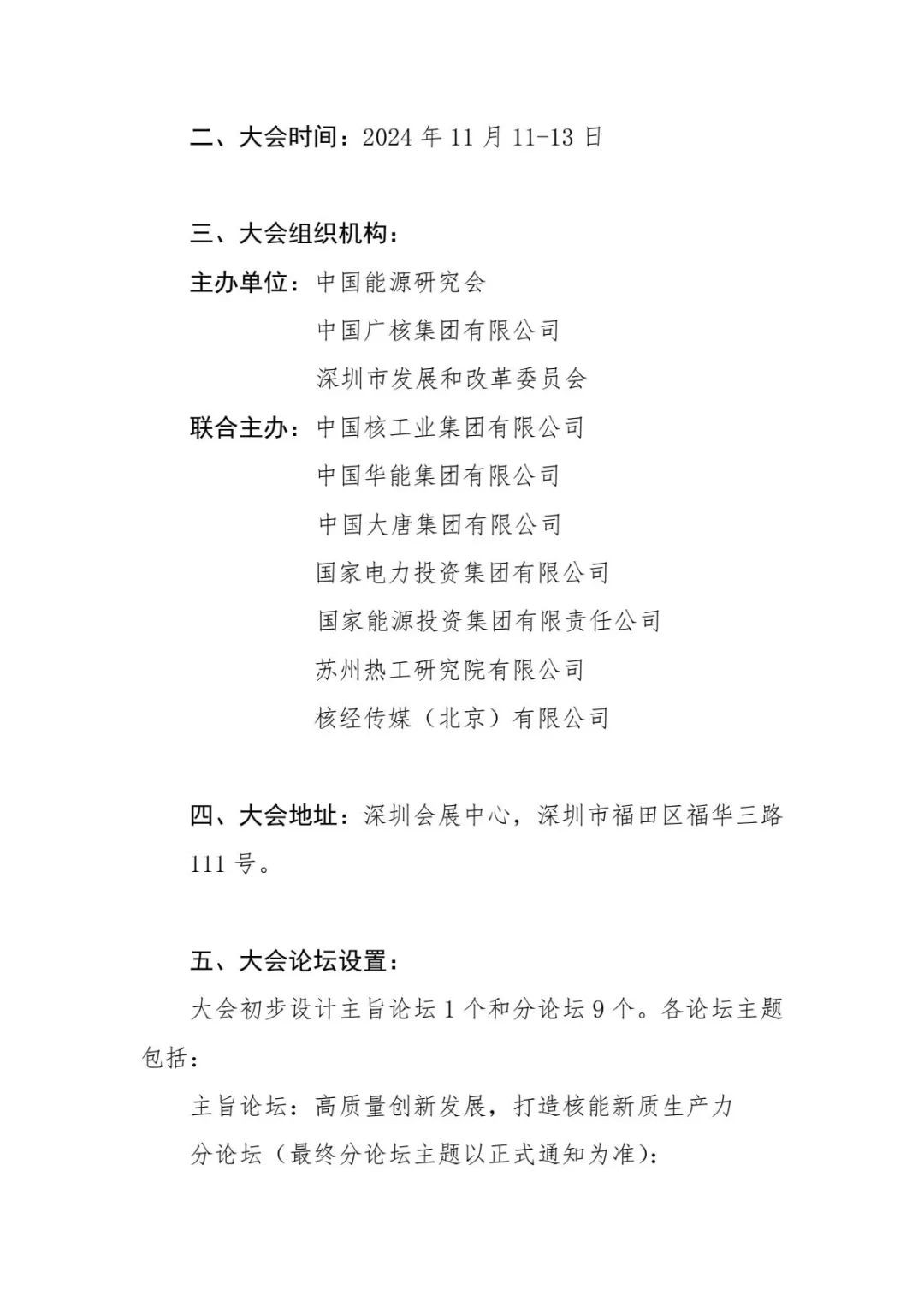 為服務(wù)大力發(fā)展新質(zhì)生產(chǎn)力,提升核能產(chǎn)業(yè)核心競(jìng)爭(zhēng)力,助力全面建成核強(qiáng)國(guó),中國(guó)能源研究會(huì)、中國(guó)廣核集團(tuán)有限公司、深圳市發(fā)展和改革委員會(huì)聯(lián)合各大核電集團(tuán)、核電產(chǎn)業(yè)鏈企業(yè)、大學(xué)與研究院所計(jì)劃于2024年11月11-13日在深圳會(huì)展中心舉辦2024第三屆中國(guó)核能高質(zhì)量發(fā)展大會(huì)暨深圳國(guó)際核能產(chǎn)業(yè)創(chuàng)新博覽會(huì)。