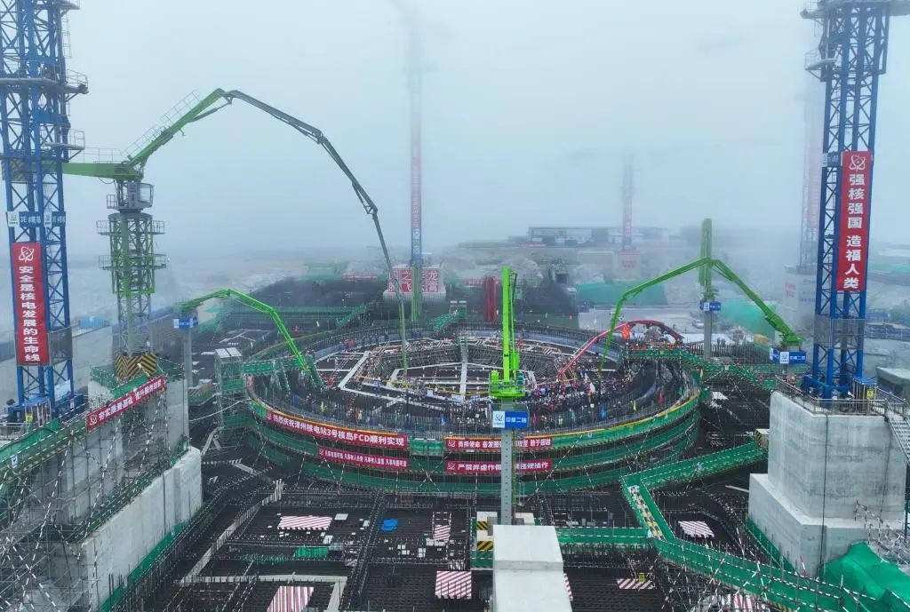 ▲2月22日,中核集團(tuán)漳州核電二期工程“華龍一號(hào)”3號(hào)機(jī)組澆灌核島第一罐混凝土澆筑現(xiàn)場(chǎng)。