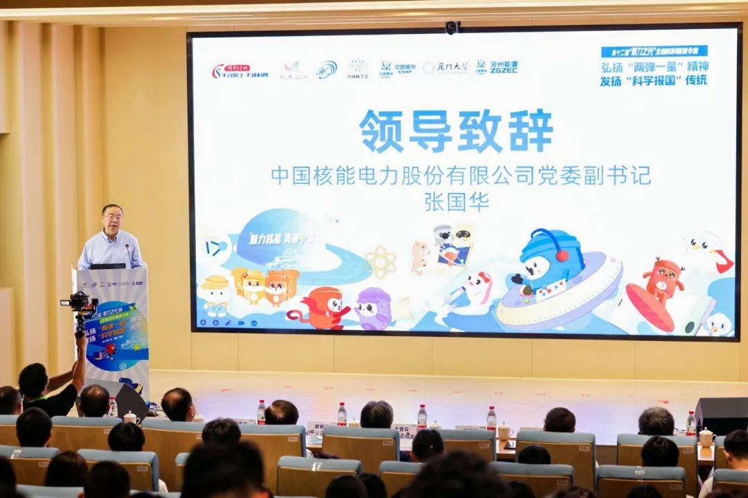 中國核電黨委副書記張國華代表主辦方致辭。他表示,經過60多年的發展,我國已成為了核能大國,保持著積極安全有序地發展核電的節奏,在確保能源安全、滿足人民的健康需求、助力全球可持續發展中已然做出并必將繼續做出不可或缺的重要貢獻,加大核科普力度,提升公眾核科學素養迫在眉睫。"魅力之光"活動自2013年開展,覆蓋全國2840所中學,參與人數超600萬,許多青少年成長為核工業新生力量,此次夏令營活動首次實現航天與核工業科普的跨界互動,閩南文化與核電文化交融,希望夏令營能讓大家深入了解核科技,播下夢想種子,結下友誼,樹立科學報國志向,傳播核能正面形象,共同推動核能事業發展,為民族復興貢獻力量。