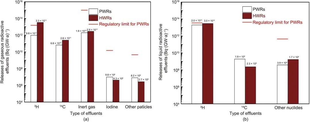 一般來(lái)說(shuō),根據(jù)法國(guó)核電站在正常運(yùn)行期間的實(shí)際放射性排放量估計(jì)的劑量比前面提到的天然放射性劑量水平低三個(gè)數(shù)量級(jí)以上。通過(guò)監(jiān)測(cè)中國(guó)6座壓水堆核電站(PWR)和一座重水堆核電站(HWR)運(yùn)行期間的氣體和液體流出物,發(fā)現(xiàn)其排放量遠(yuǎn)低于監(jiān)管限值和天然輻射照射水平。多年來(lái),中國(guó)和法國(guó)的液體和氣體放射性排放量都大幅減少。