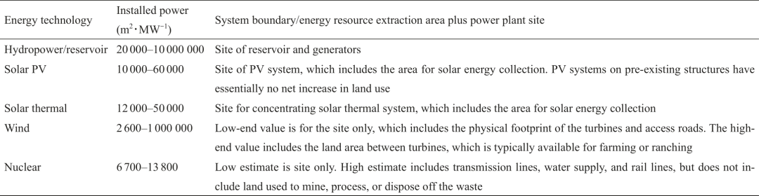 表2 不同能源系統(tǒng)單位裝機(jī)容量的土地利用強(qiáng)度[?]