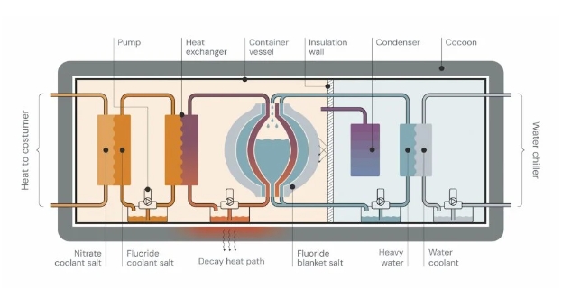 那么這一切是怎么發生的呢……?基礎和起源是熔鹽反應堆實驗 (MSRE),這是一座釷增殖反應堆,于 20 世紀 60 年代在美國橡樹嶺國家實驗室運行了五年。隨著互聯網在 2000 年左右的普及,這項技術背后的知識產權得以公開,并被世界各地的許多大學團體采用。這就是人們對熔鹽反應堆興趣重新燃起的開始,并催生了一個目前正在興起的行業。