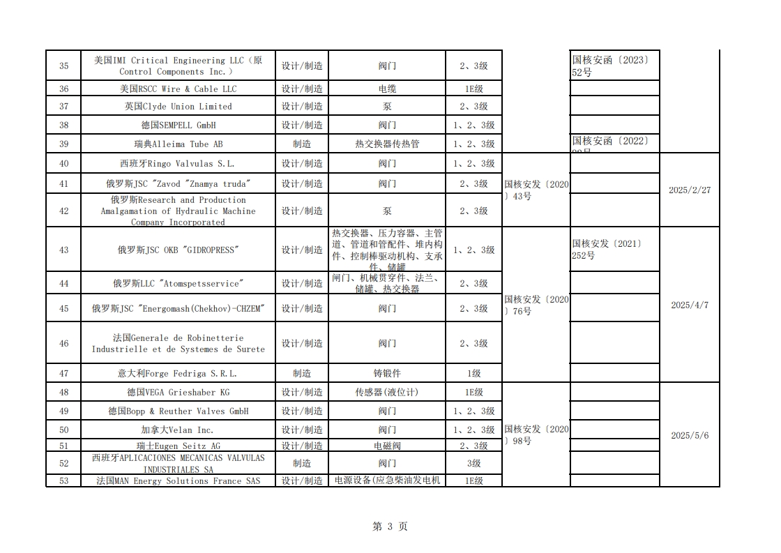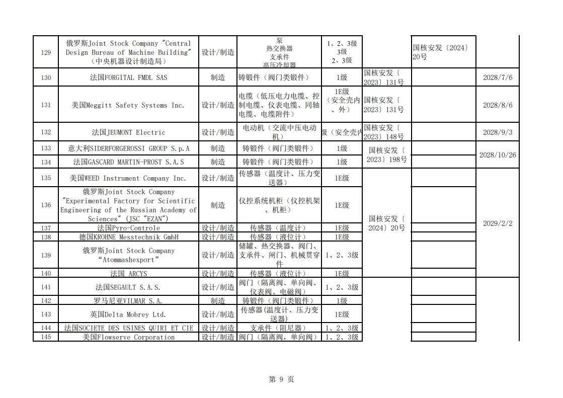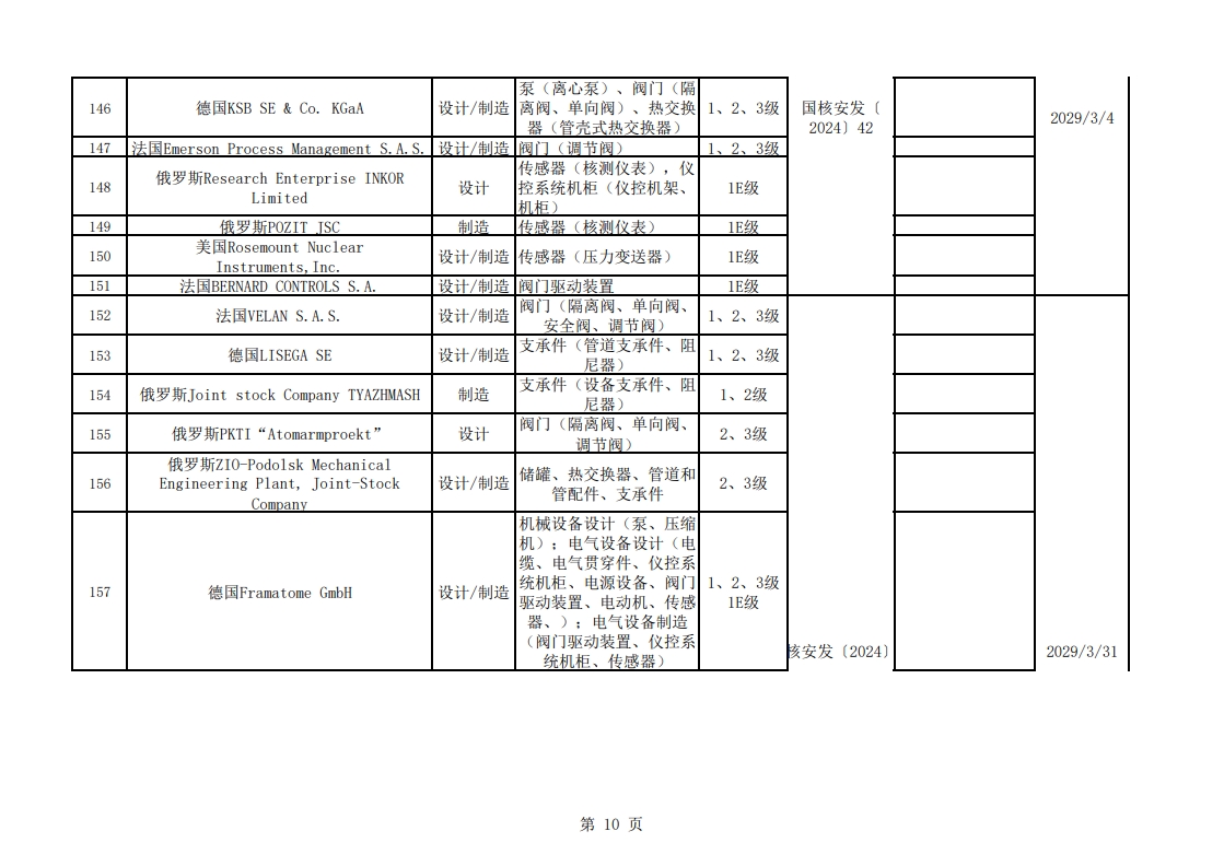 2024年8月1日,國家核安全局發布民用核安全設備活動境外單位注冊登記信息統計表,截至2024年6月30日共有168家登記在冊。
