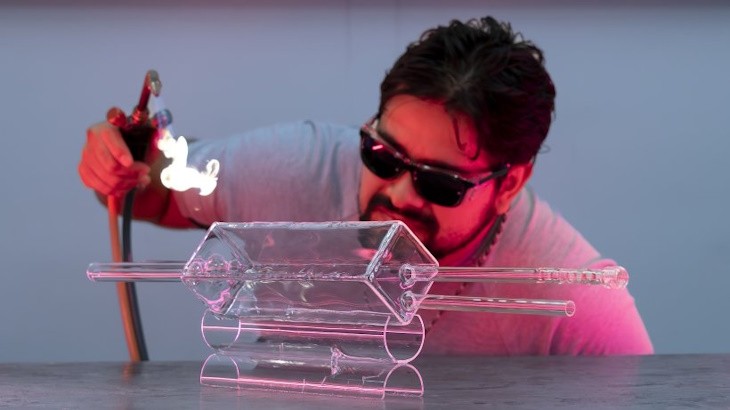 科學(xué)吹玻璃工匠卡洛斯·羅德里格斯·弗洛雷斯 (Carlos Rodriguez Flores) 正在制作玻璃容器 (圖片來源:ORNL)
