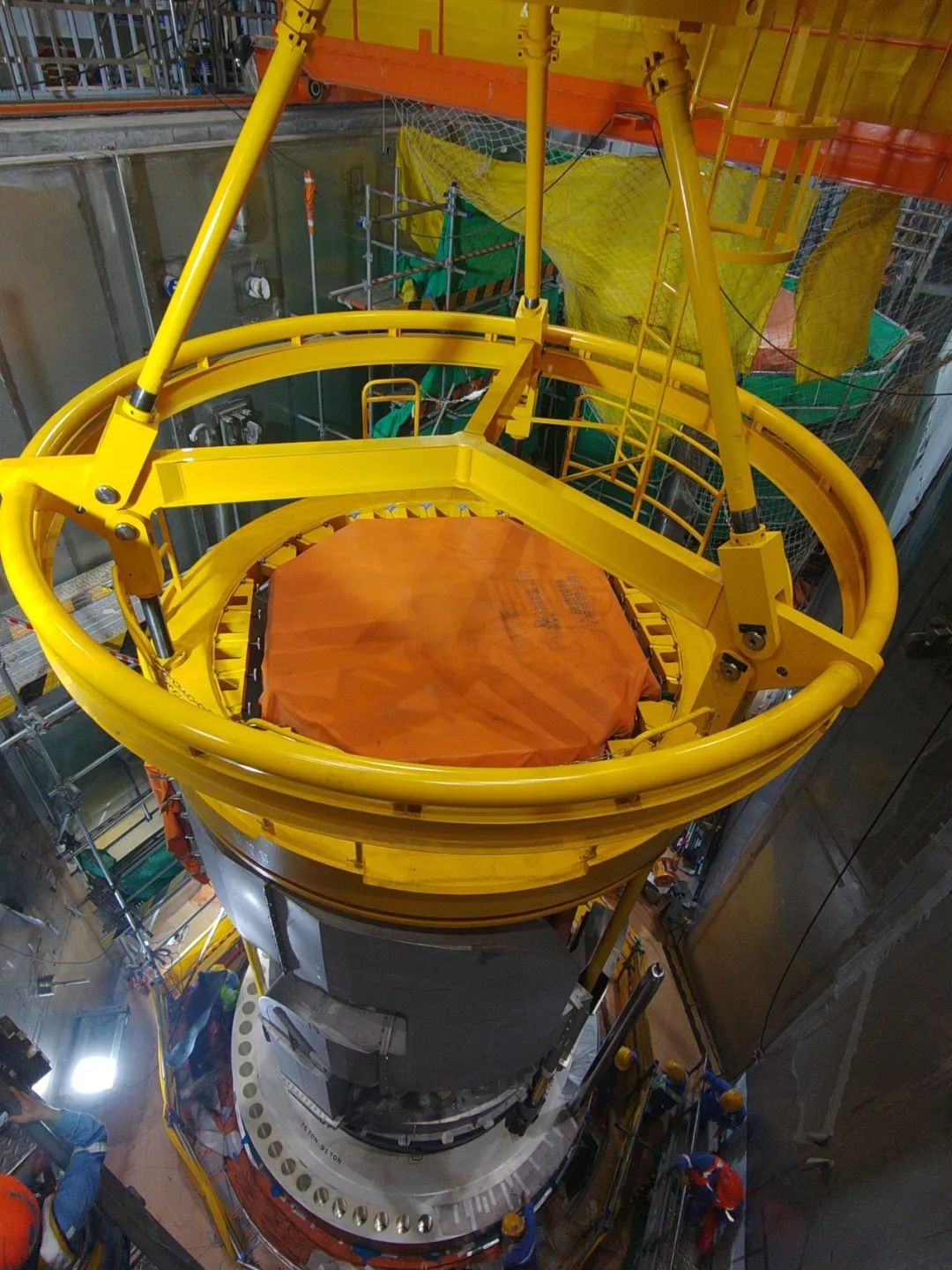 中廣核“華龍一號(hào)”反應(yīng)堆壓力容器頂蓋體是反應(yīng)堆冷卻劑系統(tǒng)壓力邊界的重要組成部分,也是核島堆芯放射性安全防護(hù)的第二道重要屏障,其重要性不言而喻。在項(xiàng)目部的精心組織下,施工團(tuán)隊(duì)嚴(yán)格遵循施工方案,從多個(gè)角度對(duì)吊裝過程中可能出現(xiàn)的突發(fā)情況進(jìn)行沙盤推演,準(zhǔn)確識(shí)別現(xiàn)場可能存在的各種風(fēng)險(xiǎn)因素,并據(jù)此制定切實(shí)可行的應(yīng)對(duì)措施。這些準(zhǔn)備工作,極大地提高了施工效率,確保反應(yīng)堆壓力容器頂蓋吊裝就位的過程質(zhì)量可控、安全可靠。