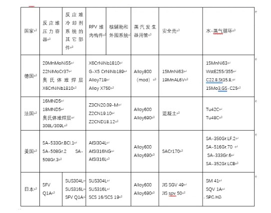 表1各主要核電國家壓水堆用材體系