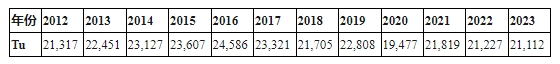 哈薩克斯坦是世界鈾重要來源國,自2009年起成為世界最大鈾生產國,年產量從 2001年 2114噸增至2016年的24689噸,之后由于鈾價低迷產量略有下降。2019 年的產量為 22808 噸,同比增長 5%,2020年由于疫情原因產量降至19477噸。2023年產量為21112噸,哈國家原子能公司KAP表示,2024年預計產量為21000-22500噸。KAP控制哈國所有鈾勘探和開采以及其他活動,包括核材料進出口,控股股東為哈主權財富基金,其中15%股份在倫交所和阿斯塔納交易所上市。