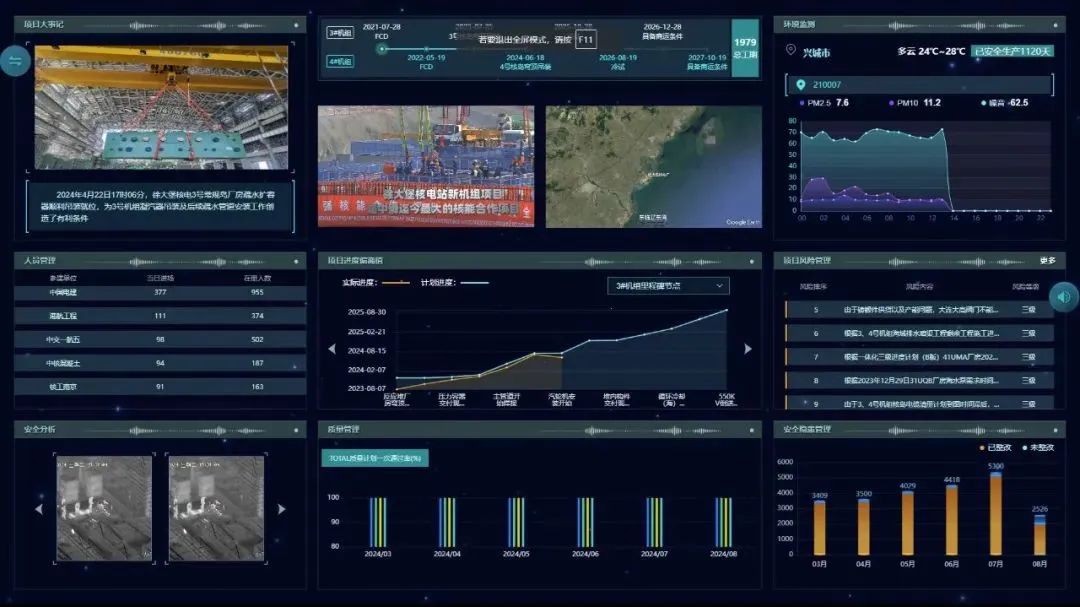 徐大堡核電作為集團(tuán)公司智慧工地統(tǒng)建試點項目,在多方大力協(xié)同下共同建設(shè)智慧工地。智慧工地管理平臺依托現(xiàn)場搭建的無線網(wǎng)絡(luò)以及隨處可見的攝像頭和無人機(jī),對重點區(qū)域、重點環(huán)節(jié)進(jìn)行全面監(jiān)控。徐大堡核電智慧工地的指揮大廳,每一位來訪者都能從智慧大屏看到不同高度、不同角度的現(xiàn)場航拍畫面;每一位項目管理人員都能通過指揮中心大屏和手機(jī)移動端,實時、全面地掌控現(xiàn)場施工情況。