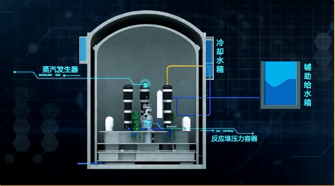 正常情況下,全廠電源以及應急柴油發電機、蓄電池都是完全可靠的,當極端情況出現,這時就輪到“右臂”發力了。布置在高處的堆坑注水箱通過重力將低溫水在換熱器表面與高溫蒸汽進行熱交換。低溫水在換熱器內升溫膨脹,沿著系統上升管將安全殼內的熱量導出。同時在堆芯溫度過高時,堆坑注水箱也可以向堆坑注水。
