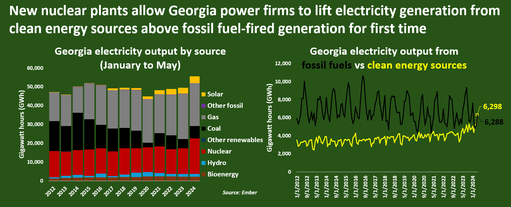 新建核電站使佐治亞州電力公司首次能夠將清潔能源發電量提高到超過化石燃料發電量