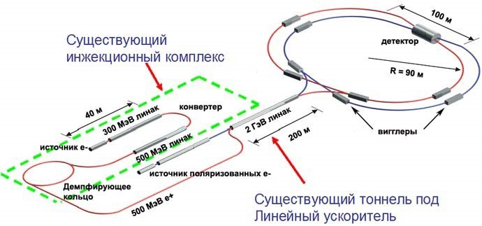 電子-正電子束碰撞加速器復合體示意圖 - Super S-Tau 工廠