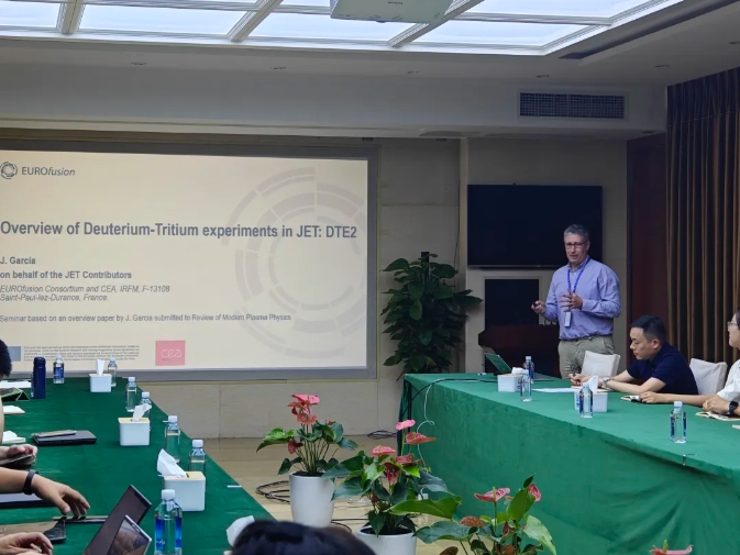 訪問期間,Garcia教授就JET和JT-60SA裝置實驗情況作了專題報告,圍繞裝置實驗物理、運行方案設計、理論模擬等方向與科研人員進行了深入探討,為新一代人造太陽“中國環流三號”實驗提供了寶貴的建議。