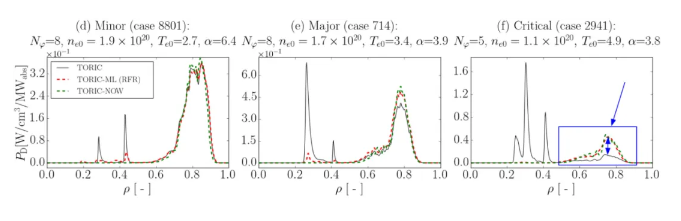 氘的加熱曲線(xiàn)顯示在 (d) 次要、(e) 主要和 (f) 嚴(yán)重異常值案例中。黑色表示原始數(shù)字代碼與異常值特征(峰值)一起顯示。紅色顯示 AI 模型的預(yù)測(cè)。綠色顯示更正后代碼的預(yù)測(cè),AI 模型預(yù)料到這些預(yù)測(cè),甚至預(yù)測(cè)更高的加熱。(圖片來(lái)源:Álvaro Sánchez-Villar / PPPL)