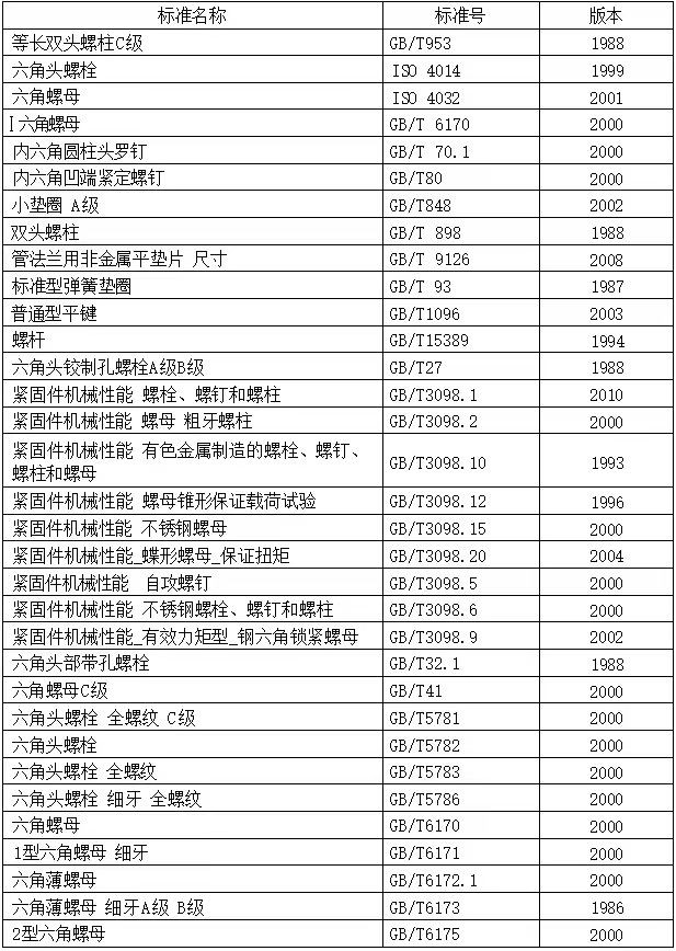我司生產(chǎn)中常用的主要標(biāo)準(zhǔn):