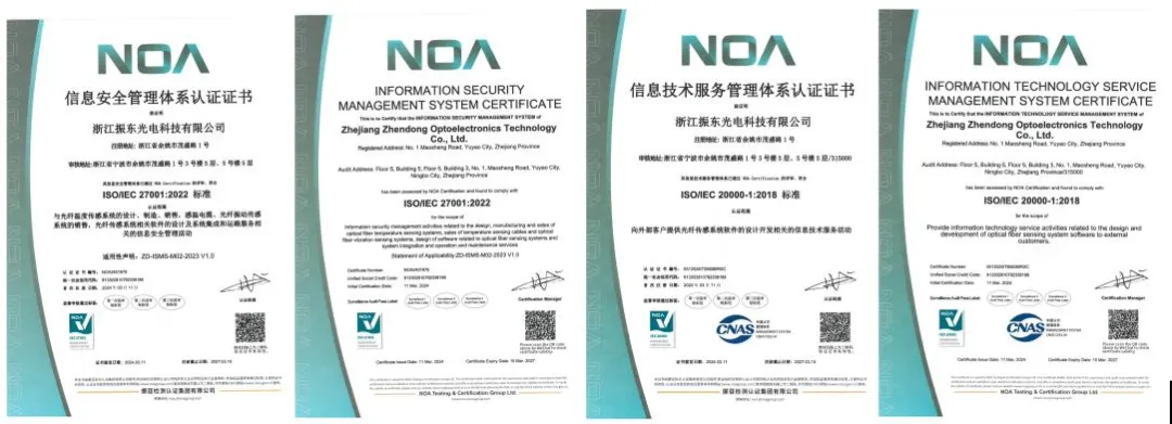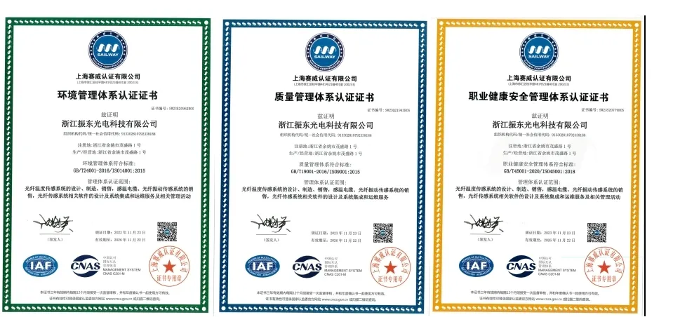 公司先后通過了ISO9001、ISO14001、ISO45001管理體系認證,掌握了產品核心技術并擁有全部自主知識產權,已獲得發明專利、實用新型專利和軟件著作權等三十余項。公司先后參與了國家標準GB21197-2007《線型光纖感溫火災探測器》、GB16280-2014《線型感溫火災探測器》、團體標準《城市綜合管廊檢測技術標準》、《高壓電纜在線監測裝置運行維護導則》、《公路隧道火災自動報警系統技術條件》、《火災自動報警系統設計規范》及系列地方標準的編制。