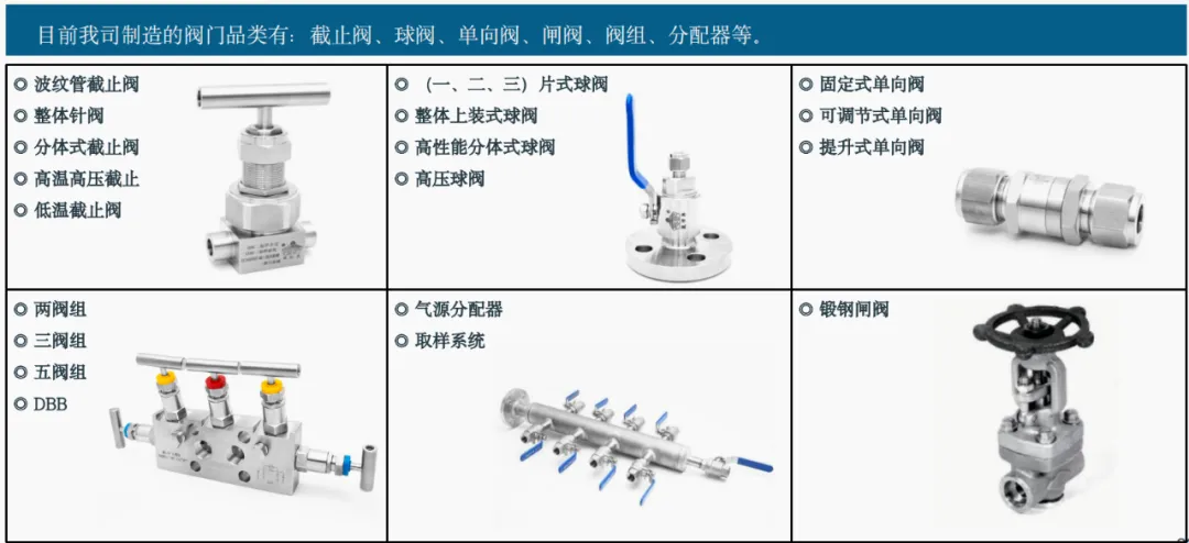 公司緊貼市場發(fā)展,用心傾聽用戶的需求,以滿足市場需求作為創(chuàng)新導(dǎo)向同時(shí),我司在核電、氫能、石化等領(lǐng)域,不斷與設(shè)計(jì)院、科研院校、業(yè)主進(jìn)行深層次共同聯(lián)合研發(fā),推動(dòng)儀表管閥件國產(chǎn)化,著力解決國家重大建議項(xiàng)目因貿(mào)易戰(zhàn),推遲項(xiàng)目周期的問題。我們的四大系列產(chǎn)品:閥門及閥組、管件、防爆電氣及接地件、橋架制造(1)儀表閥門是儀控測量系統(tǒng)中重要的控制部件,具有截止、調(diào)節(jié)、導(dǎo)流、防止逆流、穩(wěn)壓、分流等功能。儀表閥門質(zhì)量的穩(wěn)定對整個(gè)儀控系統(tǒng)測量數(shù)據(jù)的準(zhǔn)確性及安全性有著至關(guān)重要的作用。