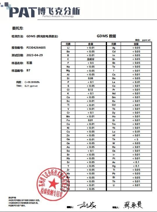 優勢: 1.設備先進性 完成石墨制品及硬質石墨氈的純化爐的研發 (1)在電阻加熱方式下,有效工作空間大于Φ1750×1600, 實現爐腔有效溫度2500℃; (2)在高溫條件下,保持良好有效的絕緣; (3)靈活高效的控制和操作模式; (4)合理的氣路(工藝氣體和保護氣體)設計; (5)爐體單位能耗較低。2.工藝先進性(1)具備將石墨基產品中雜質總含量純化至≤1ppmw的能,力,碳氈純化≤10ppmw的能力;(2)具備對石墨基產品中非碳元素的定向性純化能力,硼具備純化至≤10ppbw的能力,鋁具備純化至≤10ppbw的能 力(第三代半導體對碳化硅對材料的需求);(3)較寬泛的加工范圍;(4)工藝參數具有較強的可編輯性,可實現生產的連續穩定運行;