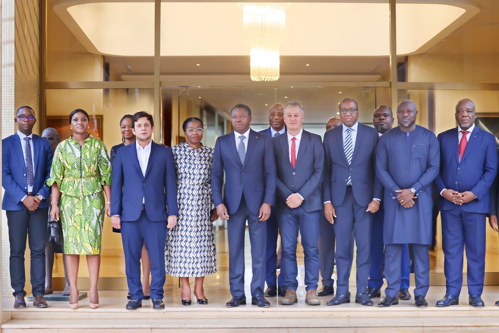 圖 2 - NANO Nuclear Energy Inc. 代表與多哥共和國總統福雷·納辛貝閣下、多哥總理維克托瓦爾·托梅加·多格貝、礦業和能源資源部長羅伯特·科菲·梅桑·埃克洛閣下以及 NANO Nuclear 非洲執行顧問委員會主席拉西納·澤爾博博士在一起。