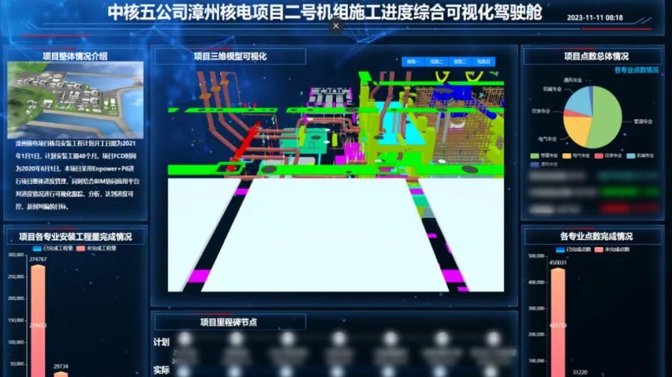 在漳州核電1號機組成功并網發電的捷報傳來之際,漳州核電一期、二期建安工程也在如火如荼地推進。立足建設新起點,面對創新驅動發展新趨勢,中核五公司通過對人工智能、大數據、物聯網等新興技術的融合應用改變傳統的核電站建造模式,形成獨特的競爭新優勢。在公司黨委的正確領導下,漳州核電項目部按照“數轉智改”的要求奮勇前行,塑造“數字建造”“智能建造”的“核五新樣板”,不斷培育壯大獨具公司特色的新質生產力。同時,項目部運用以“BIM+云大物智移”為代表的新一代數字化技術,實現流程驅動向數據驅動轉變,通過數字革新改變傳統管理模式并重塑項目業務流程,開啟“數字+智能化”建造,賦能核電工程建安一體化新“質”發展。
