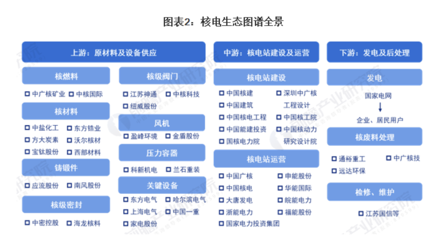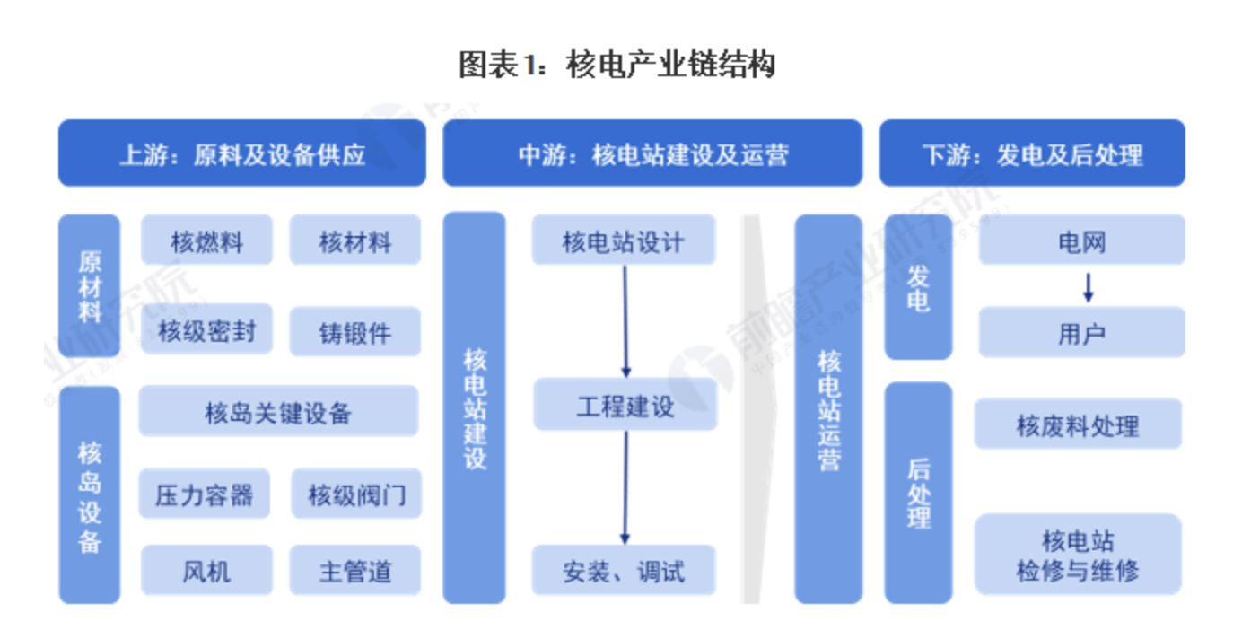 上游環節:包括核燃料、原材料生產,以及核電設備的制造等。