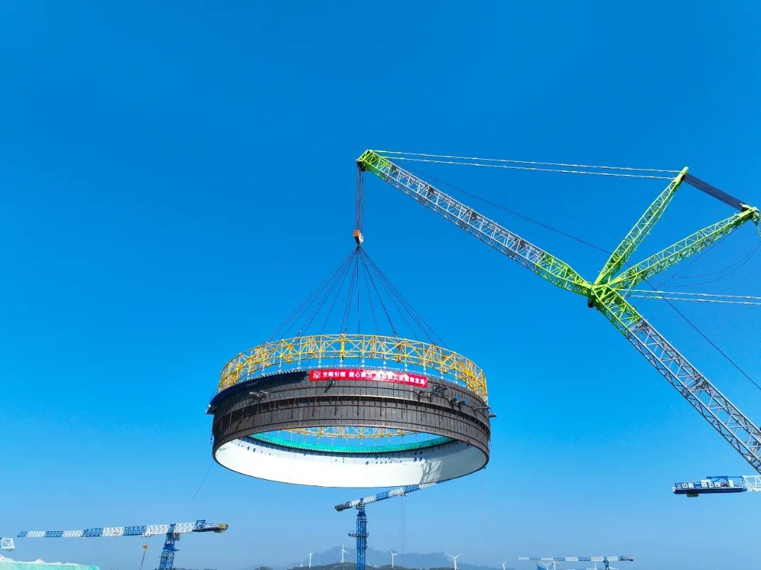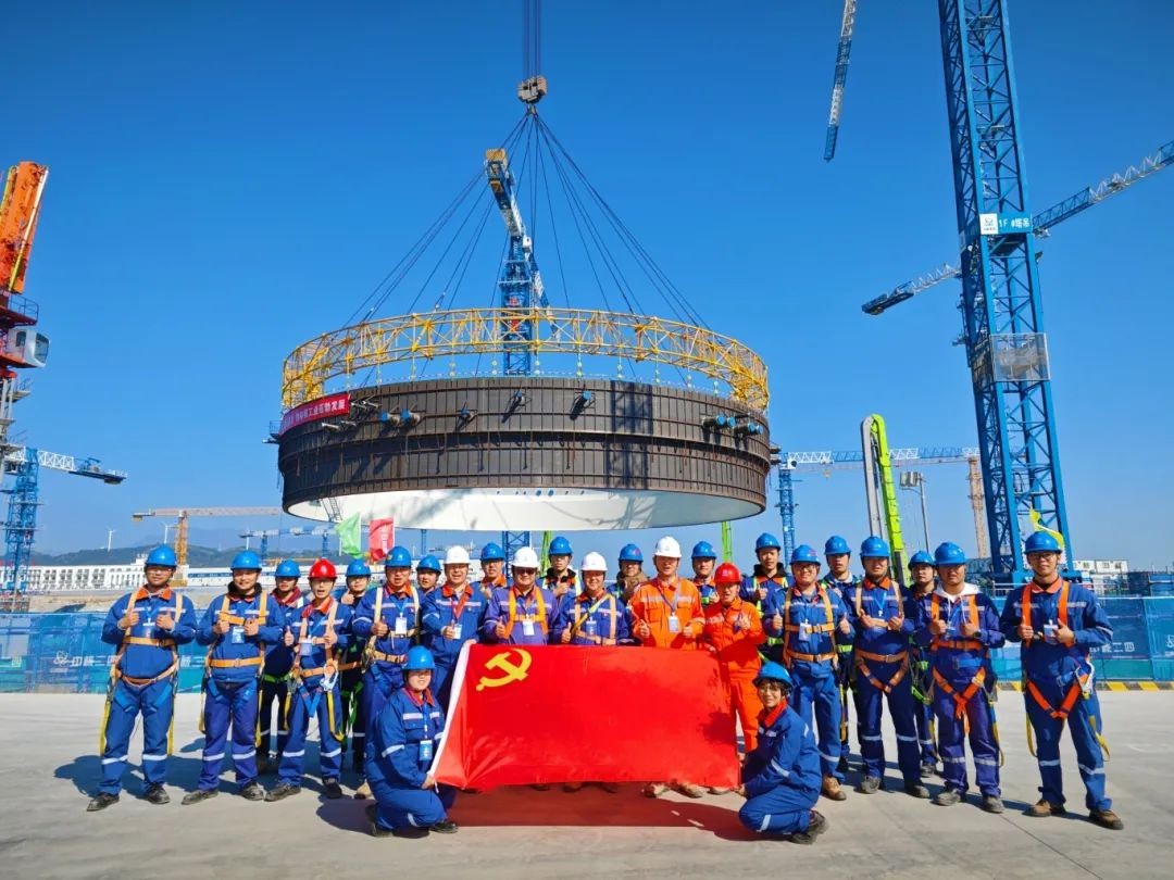 在吊裝過程中,漳州核電項目部攻堅克難、精準實施,強化組織協同,認真開展吊裝先決條件檢查,共召開20余次專題會、50余次技術討論,進行了20余次交底,形成了110余條先決條件清單,全力保障吊裝安全可控;堅持精益建造,提前完成鋼襯里底板焊接,并通過周密驗算增設工裝支撐,避免了吊裝后空間受限對焊接質量和焊接效率的影響,為后續連續性模塊化施工創造了有利條件;深化黨建引領,成立黨員突擊隊,定攻堅任務、下行動指令、打攻堅戰役,以高質量黨建保障重大工程建設,最終成功完成鋼襯里模塊一吊裝。