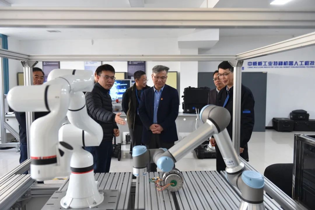 調(diào)研期間,戴雄彪一行觀看了核電安全生產(chǎn)管理平臺(ASP-1)、“核睿思語”核電大模型、核工業(yè)互聯(lián)網(wǎng)平臺(DHP)等演示,在中國核電網(wǎng)絡(luò)安全實驗室、核工業(yè)特種機器人實驗室實地參觀了試驗設(shè)備設(shè)施,與科研人員進(jìn)行交流,深入了解相關(guān)科研進(jìn)展與成果。