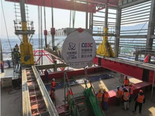 12月18日18點28分,歷時9個小時,三門核電二期工程4號機組發電機定子正式吊裝就位,標志著二期工程2024年最后一個里程碑節點順利實現,至此年度14個里程碑全部完成,為常規島廠房封閉及汽輪發電機組全面轉入安裝奠定了堅實的基礎。