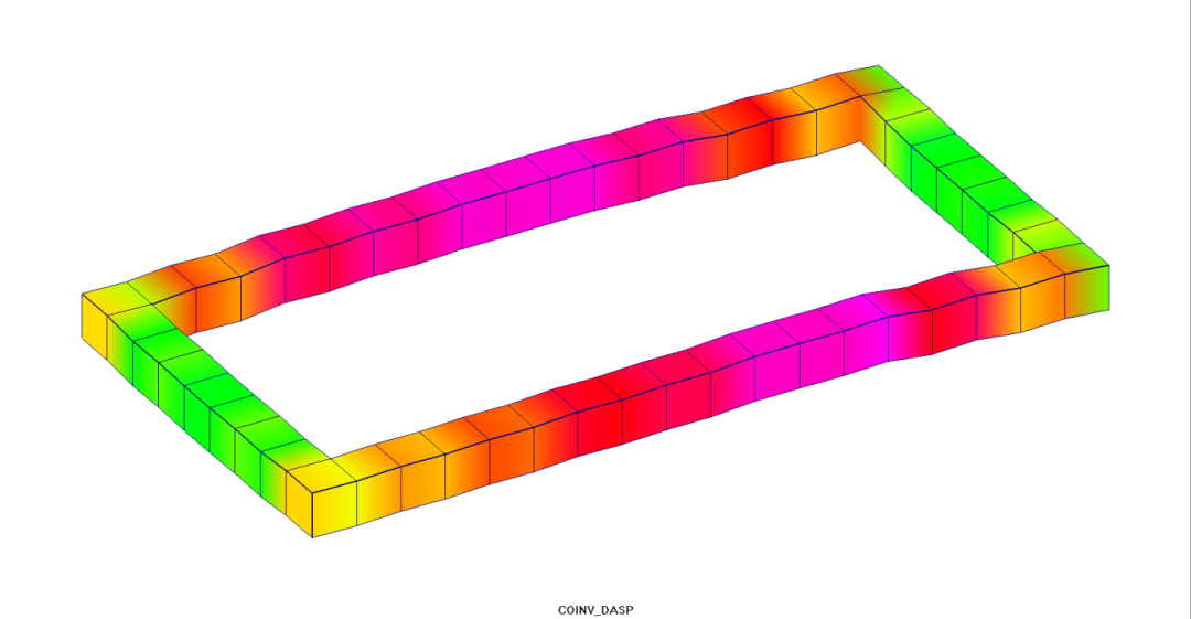 通過對 CAP1400 環行起重機橋架測試時,測得了其前3 階模態參數,測試分析振型結果如圖4-6所示。