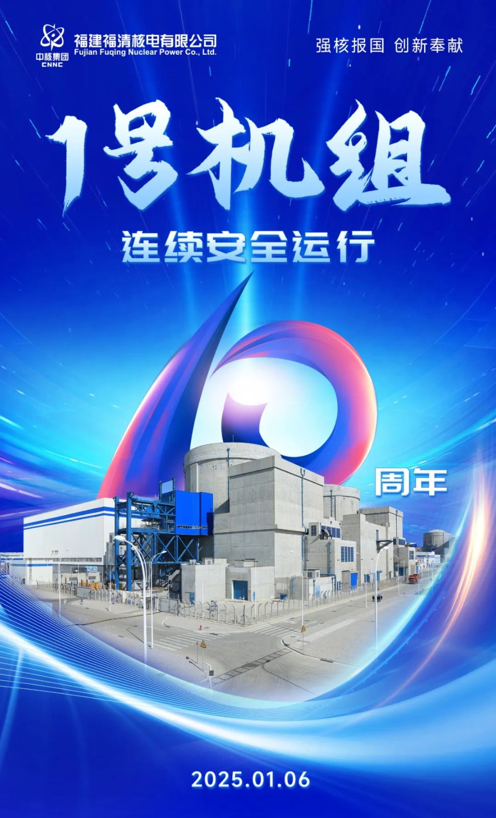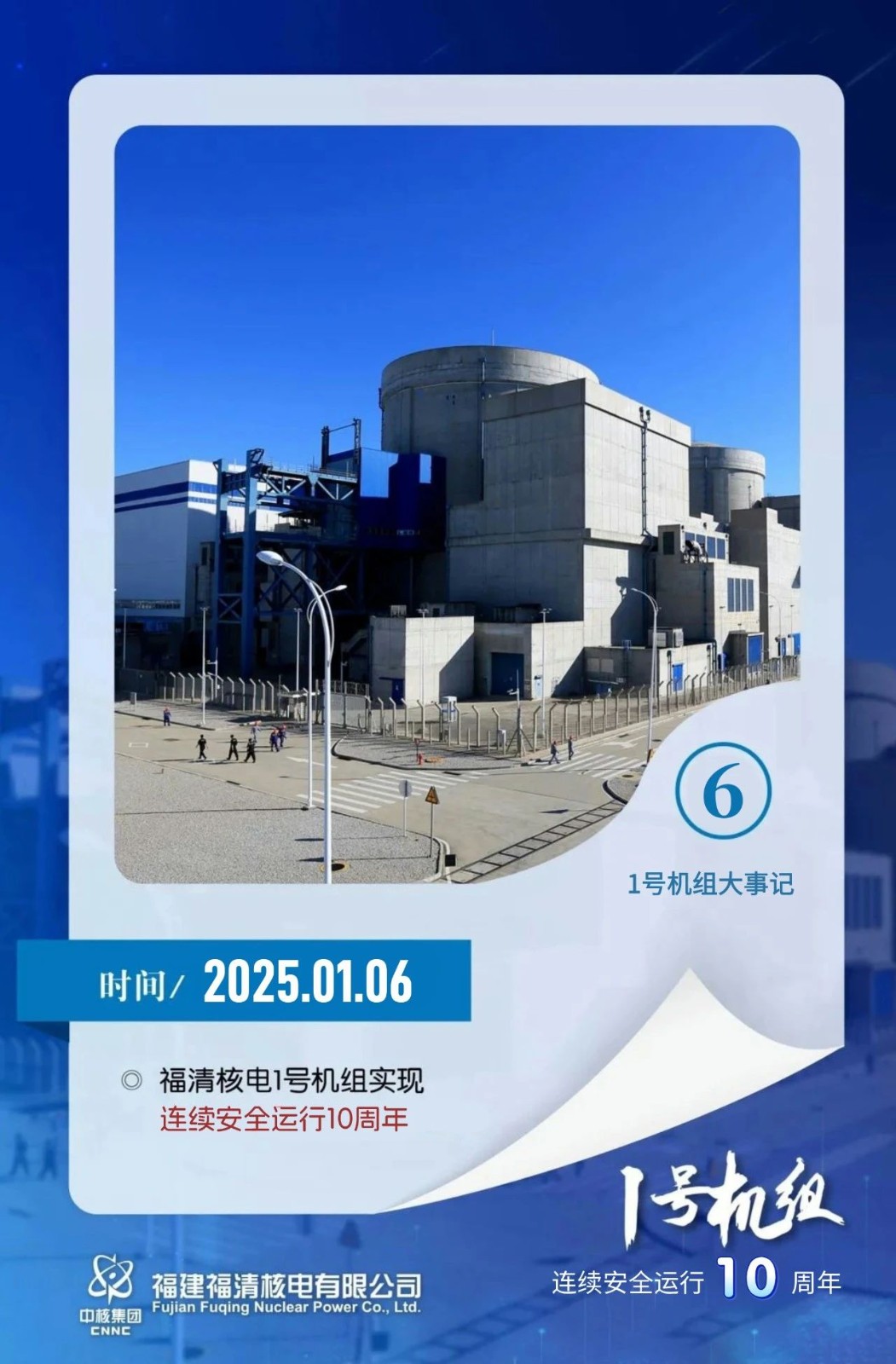 1月6日,在即將迎來核工業創建70周年之際,中國核電投資控股的福清核電1號機組實現連續安全運行10周年,創中核集團、中國核電在運核電機組連續安全可靠運行天數新紀錄。