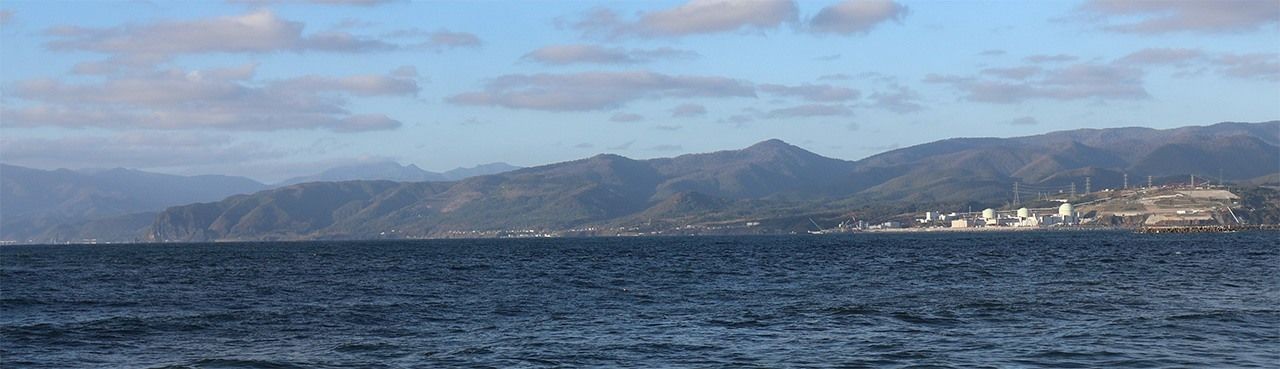 泊核電站(右前方),距離色丹半島約 16 公里的神惠內核電站清晰可見。(© Matsumoto Sōichi)