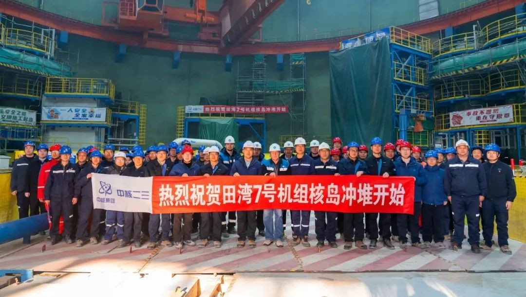 2025年1月19日9時19分,隨著主控室操作員的指令,田灣7號機組冷卻劑貯存系統泵(KBB11AP001)順利啟動,硼水儲存系統(70JNK40BB001)水箱內的除鹽水穿過冷卻劑貯存系統、容積與硼酸控制系統管線,涌進7號機組一環主管道過渡段、匯入反應堆壓力容器,標志著田灣核電站7號機組核回路沖洗工作正式拉開序幕。