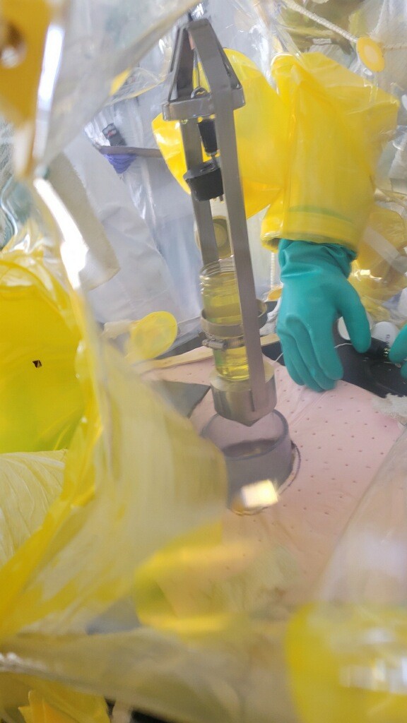漢福德場址的工人從一個大型地下儲罐中取出廢物樣本進(jìn)行檢測,以確保其符合今年晚些時候送往廢物處理和固定化廠的標(biāo)準(zhǔn)