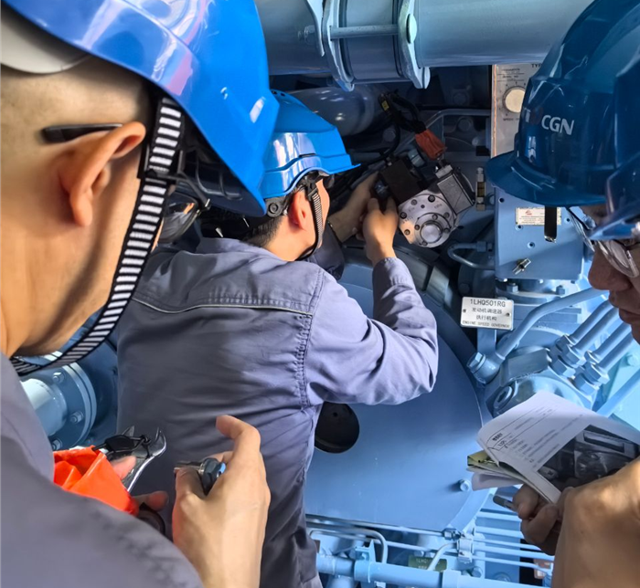 在柴油機檢修項目中,青年員工廖浩然出色完成了拆裝管道、油門調整、油泵組件的回裝等關鍵工作,不僅積累了“經驗值”,還強化了“戰斗力”。