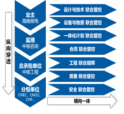 為進一步統籌項目組織協調,優化資源配置,海南核電整合項目基地“華龍一號”與“玲龍一號”內外部力量,組織業主單位、總承包單位、監理單位、土建單位、安裝單位等,建立跨企業的一體化組織機構,通過對人員、材料、工器具等資源進行合理調配,實現項目資源的優化配置,保障小堆項目安全、質量、進度、投資整體受控。