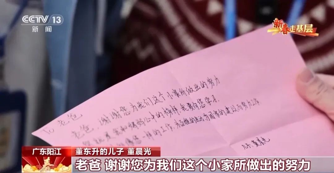 兒子董晨光說(shuō):“老爸,謝謝您為我們這個(gè)小家所做出的努力,您就是我和媽媽心目中的榜樣,我要向您學(xué)習(xí),將來(lái)想做像您一樣的工作,為百姓的生活和國(guó)家的建設(shè)作出貢獻(xiàn),爸爸辛苦了。”
