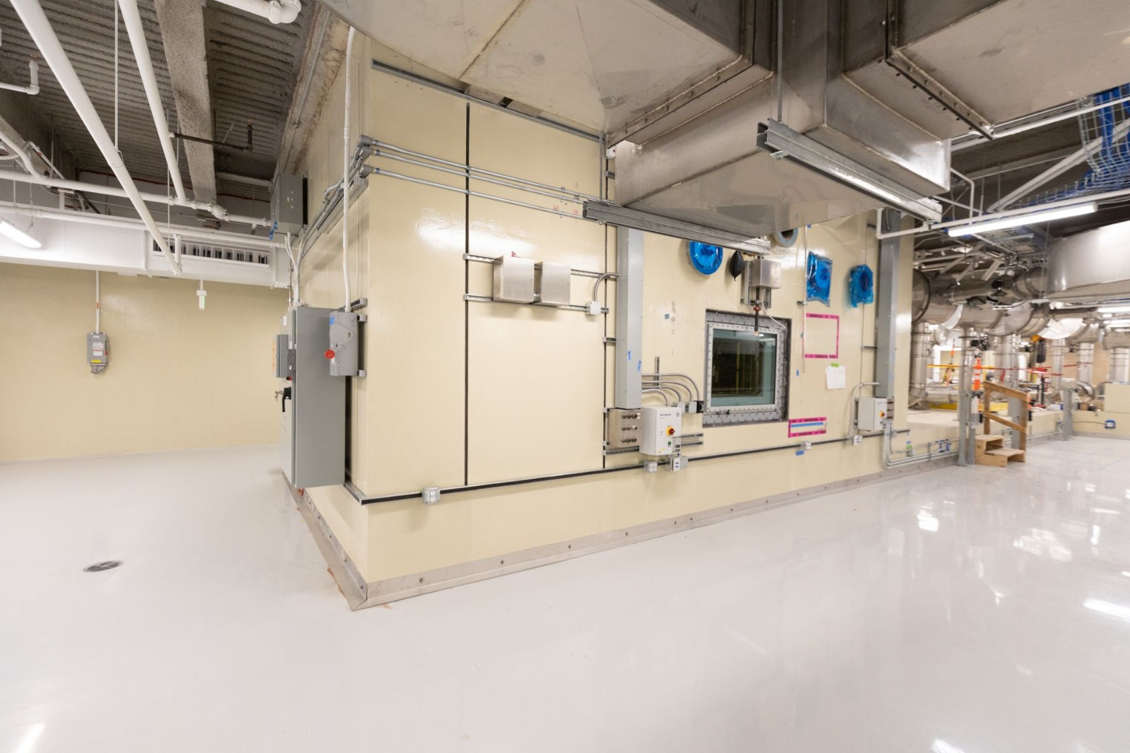 我們使用氣動傳輸管(類似老式的管道)將樣品輸送到整個設施。這些管道都與主熱室相連,我們所有的屏蔽外殼都直接與主熱室相連。