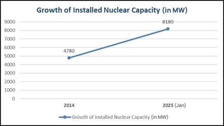 這些立法變化有望為核能領(lǐng)域的投資和創(chuàng)新創(chuàng)造更有利的環(huán)境。這一使命符合印度到2047 年實(shí)現(xiàn)100 吉瓦核能容量的承諾,這一里程碑對(duì)于減少碳排放和滿足未來(lái)能源需求至關(guān)重要。截至2025 年 1 月 30 日,印度的核電容量為8180 兆瓦。