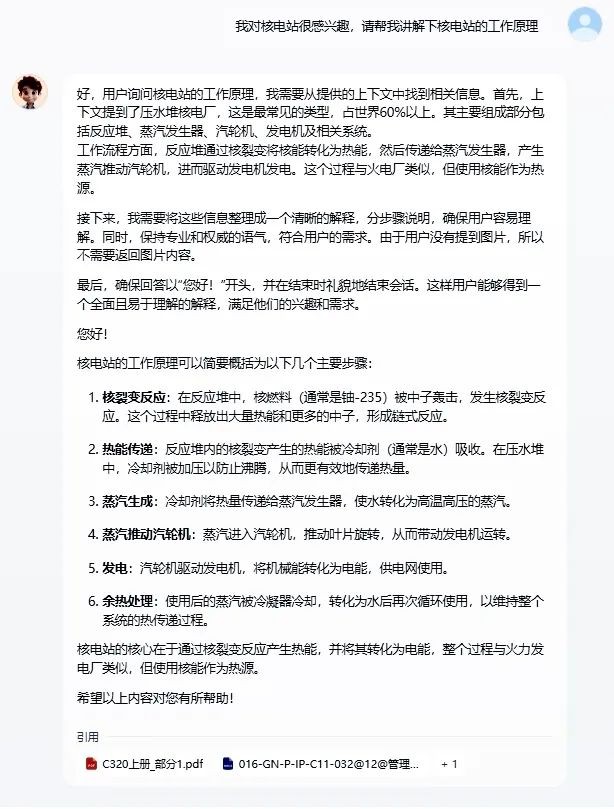 在此基礎上,防城港核電快速應用、高效落地,完成了自主人工智能產品“防小e”的迭代升級,解決了員工在工作過程中的文本生成、知識問答過程中遇到的難點痛點。