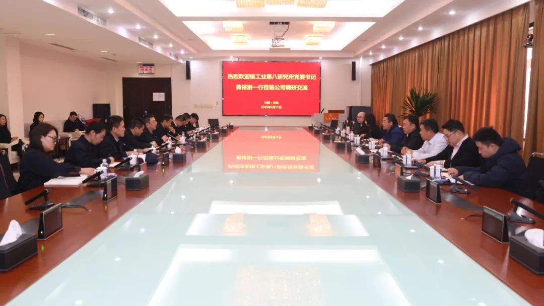 2月11日,核工業第八研究所(以下簡稱中核八所)黨委書記黃裕澍,所長、黨委副書記孫濤一行到訪公司。公司黨委書記、董事長殷如斌,總經理、黨委副書記李磊熱情接待。
