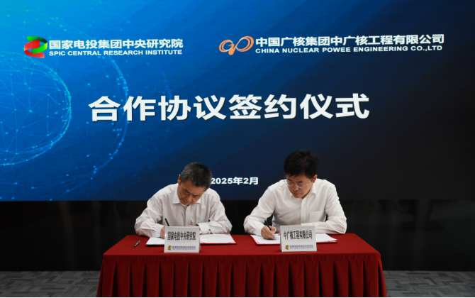 2月14日,國家電投中央研究院與中廣核工程有限公司(以下簡稱“工程公司”)在京簽署《核電耦合熱泵儲能調峰技術意向合作協議》并舉行工作會商。中央研究院黨委書記、董事長樊勝,工程公司黨委書記、董事長、總經理寧小平代表雙方簽署合作協議,并就進一步深化合作進行交流。中央研究院改革領導小組副組長王永文主持會議。