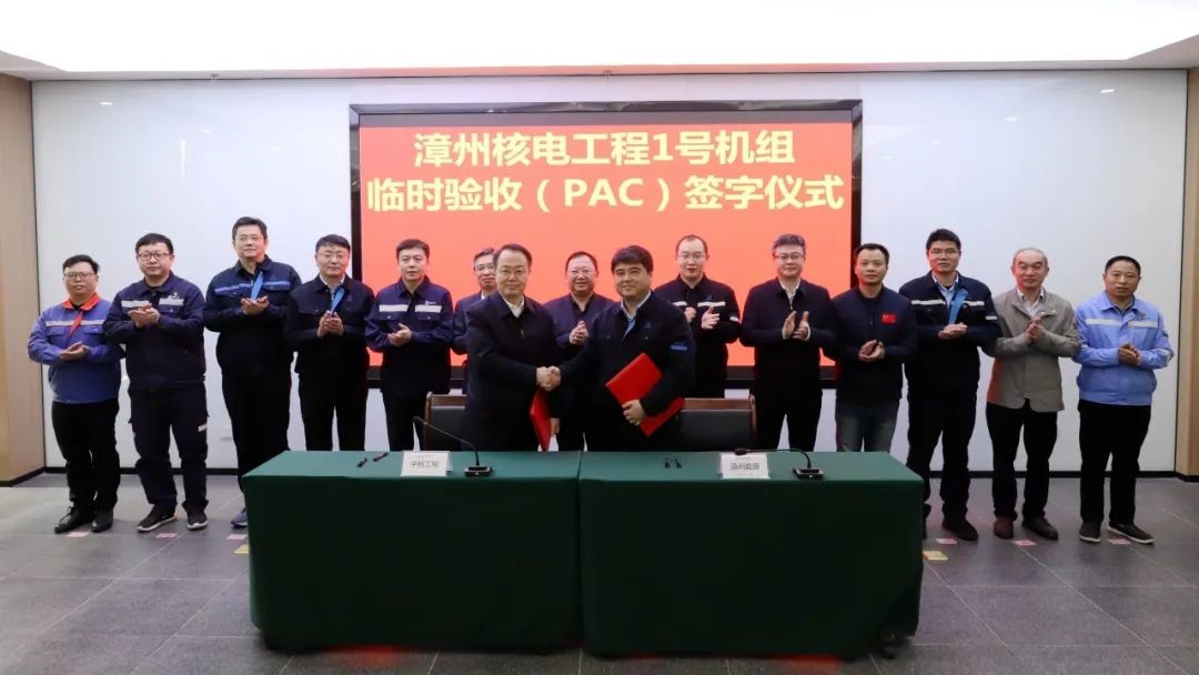 華龍批量化,漳州率先行。漳州核電1號機組臨時驗收(PAC)證書的簽字,標(biāo)志著機組的保管和管理責(zé)任由中核工程正式移交漳州能源。