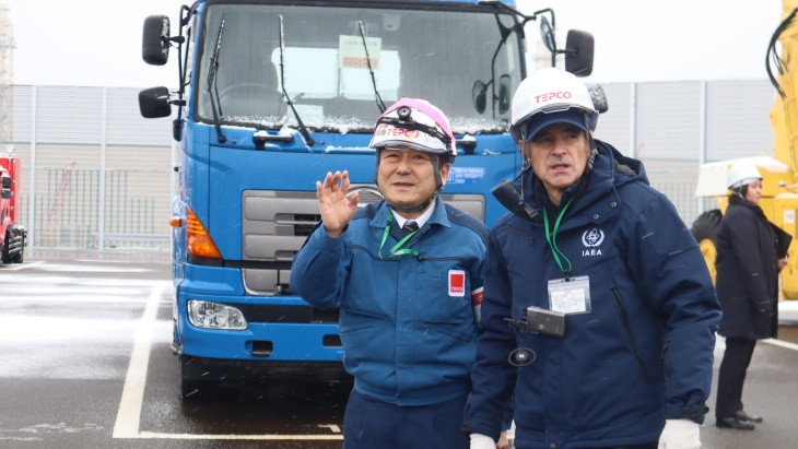 格羅西在柏崎刈羽檢查應(yīng)急車輛(圖片來源:東京電力)