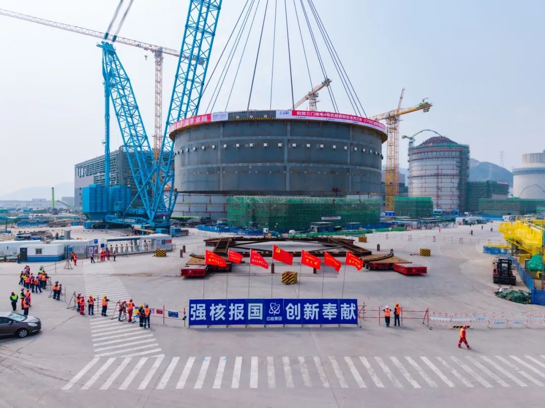 2月26日中午12時7分,在吊裝總指揮的指令下,由中核五公司承建的三門核電4號機組鋼制安全殼(CV)筒體三環(huán)正式起吊,通過2600噸吊車的起升、變幅、轉(zhuǎn)動、落鉤等動作,于13時40分順利吊裝就位,歷時1小時33分精準(zhǔn)就位于4號機組鋼制安全殼筒體二環(huán)上口,整個過程安全質(zhì)量受控。此次鋼制安全殼筒體三環(huán)吊裝就位為4號機組核島反應(yīng)堆廠房后續(xù)施工創(chuàng)造了有利條件。